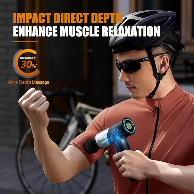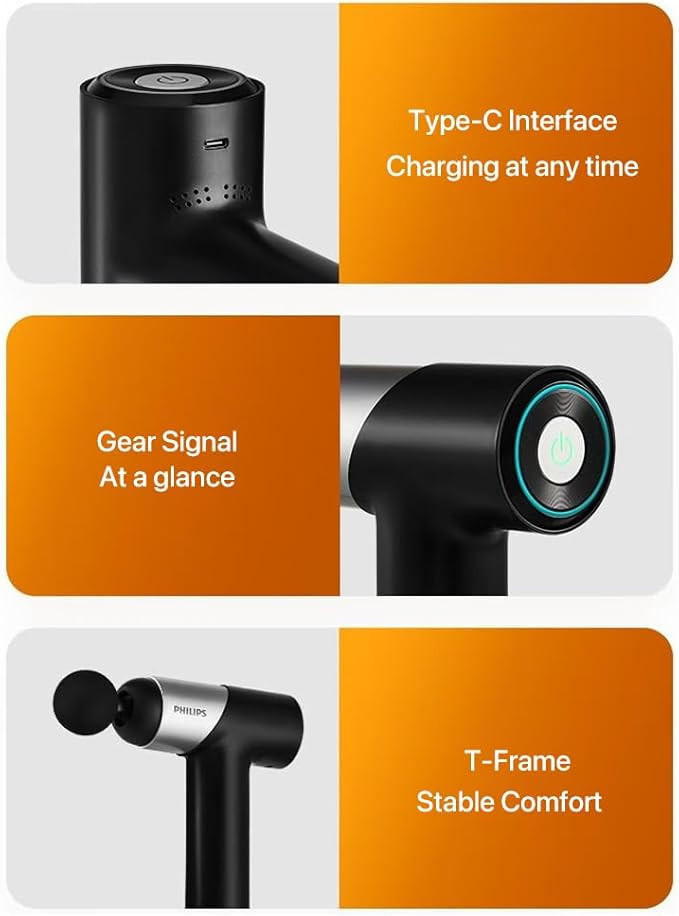 Relieve sore muscles and accelerate recovery with the Philips Powerful Massage Gun. Designed for deep tissue therapy, this percussion massage gun helps reduce muscle tension, improve blood circulation, and enhance recovery after workouts, long office hours, or daily activities. Equipped with 6 interchangeable massage heads and 5 adjustable intensity levels, it delivers a personalized massage experience for your home, office, or gym. Compact, cordless, and easy to use, it’s perfect for athletes, fitness enthusiasts, or anyone seeking effective muscle relaxation.