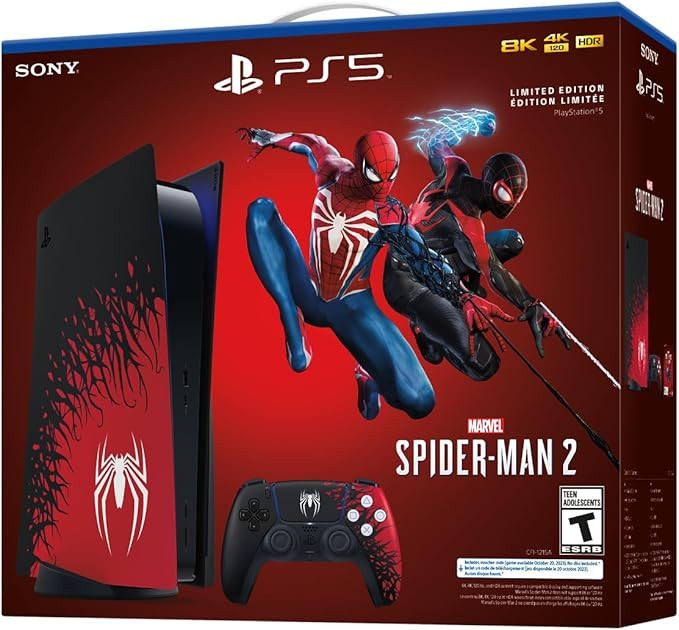 Marvel’s Spider-Man 2 Limited Edition PlayStation®5 console designUltra-high speed 1TB SSD for fast loading and smooth gameplaySupports up to 4K resolution for crisp and detailed visualsDualSense wireless controller with haptic feedback and adaptive triggersRay tracing for realistic lighting and reflectionsTempest 3D AudioTech for immersive in-game soundBackward compatibility with most PS4 gamesExclusive bundle ideal for collectors and fansSpecificationsModel: PlayStation®5 Console – Marvel’s Spider-Man 2 Limited EditionStorage Capacity: 1TB SSDMaximum Resolution: Up to 4KProcessor: AMD Ryzen Zen 2Graphics Processor: AMD RDNA 2-based GPUDisc Drive: Ultra HD Blu-rayRay Tracing: SupportedAudio Technology: Tempest 3D AudioTechConnectivity: HDMI, USB-A, USB-C, Wi-Fi, BluetoothController: DualSense Wireless ControllerUsageSuitable for home gaming and entertainment setupsIdeal for playing PS5 and PS4 physical and digital gamesCan be used for online multiplayer gaming via PlayStation NetworkSupports immersive 4K gaming on compatible TVs and monitorsPerfect for Spider-Man fans and collectors