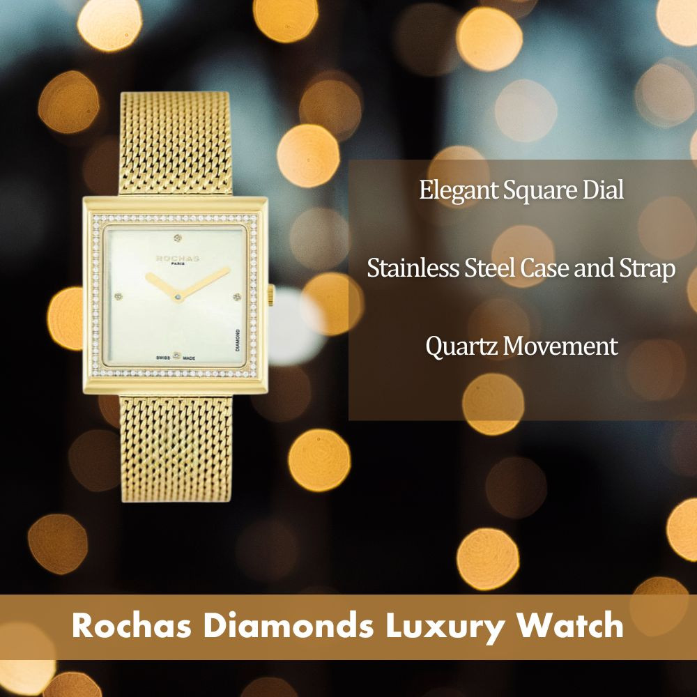 Whether worn at a formal event or as a daily statement piece, this Rochas luxury watch in gold embodies classic charm, sophistication, and modern fashion — making it a perfect choice for women who appreciate refined style.