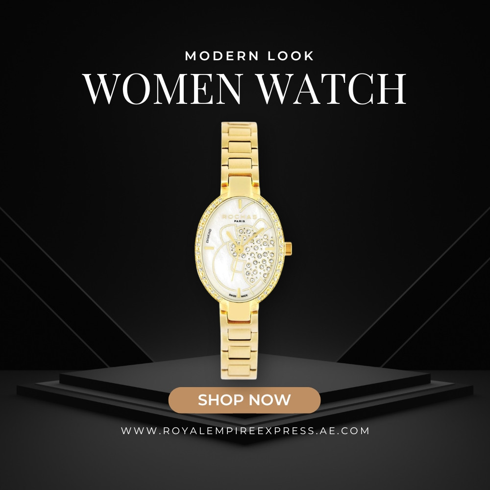 The Rochas Ladies Watch has a gold-plated stainless steel band and case that looks very elegant, luxurious, and has a timeless appeal. It’s made for women who love a refined and stylish look. This watch combines a sophisticated feel with a modern design. The shiny gold color and smooth surface make it a great choice for wearing every day or on special events.