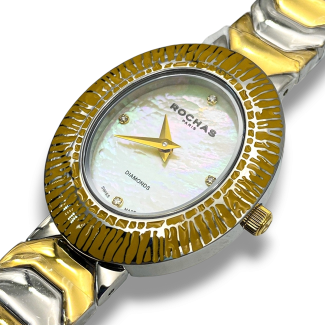 Introducing a stunning women’s watch that combines timeless elegance with modern sophistication. The iridescent mother of pearl dial captures the light beautifully, creating a subtle, mesmerizing shimmer that enhances its luxurious appeal.