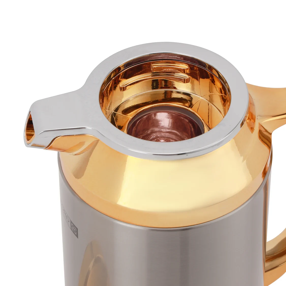 - 1.6-liter capacity perfect for family, home, office, or outdoor use- Double-wall insulation keeps drinks hot or cold for a long time- Leak-resistant lid stops spills and helps keep temperatures consistent- Durable stainless steel build ensures it lasts for years- Wide mouth makes it easy to fill, pour, and clean- Keeps drinks tasting fresh and original- Sleek and modern look that fits in any environment- Works well with tea, coffee, juice, and other drinksSpecifications:- Brand: Royalford- Model: RF12124- Capacity: 1.6 liters- Material: High-quality stainless steel- Insulation Type: Double-wall vacuum insulation- Temperature Retention: Keeps drinks hot and cold for a long time- Lid Type: Leak-resistant and secure- Mouth Type: Wide opening- Finish: Stylish stainless steel exterior- Suitable For: Hot and cold drinks, both indoor and outdoor use