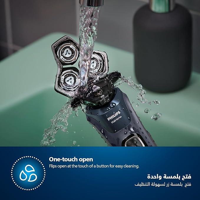 Cleaning is simple—flip open the shaver head at the touch of a button and rinse under running water for quick maintenance. Compact, powerful, and designed for all skin types, the Philips Series 5000 provides precision grooming with lasting comfort.