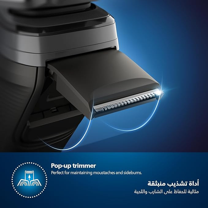 Complete your look with the pop-up precision trimmer, integrated into the shaver body, ideal for maintaining a moustache and trimming sideburns. The intelligent facial-hair sensor analyzes hair density 500 times per second, automatically adjusting cutting power for a gentle and comfortable shave.