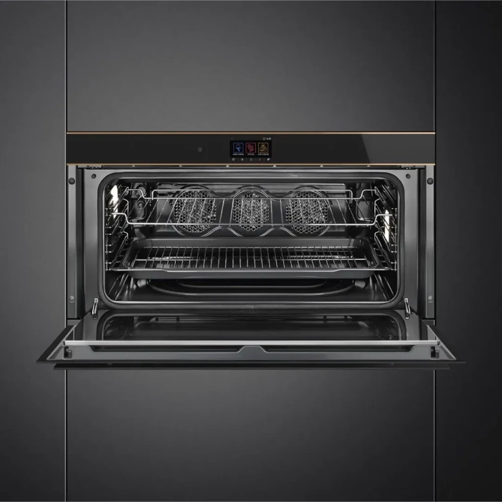 Advanced Safety Features: Cool-to-touch full glass door, soft-close hinge, tangential cooling system, and auto-stop on door opening.