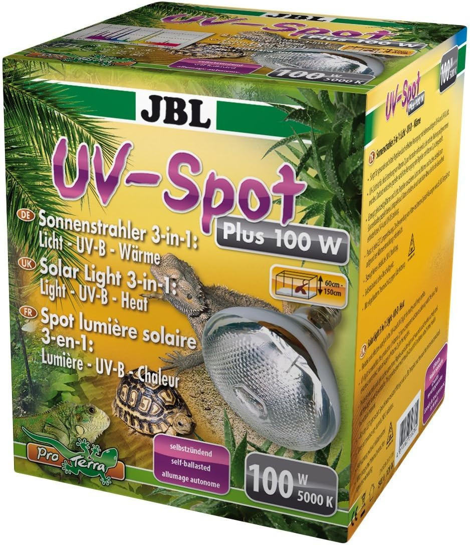 The Solar UV Spot Plus (JB6183900) provides a balanced source of heat, light, and essential UV radiation for reptile habitats. With a 160W power output, this lamp ensures your reptiles stay healthy and active by delivering the UV-A and UV-B rays they need for proper metabolism, bone strength, and natural behavior.