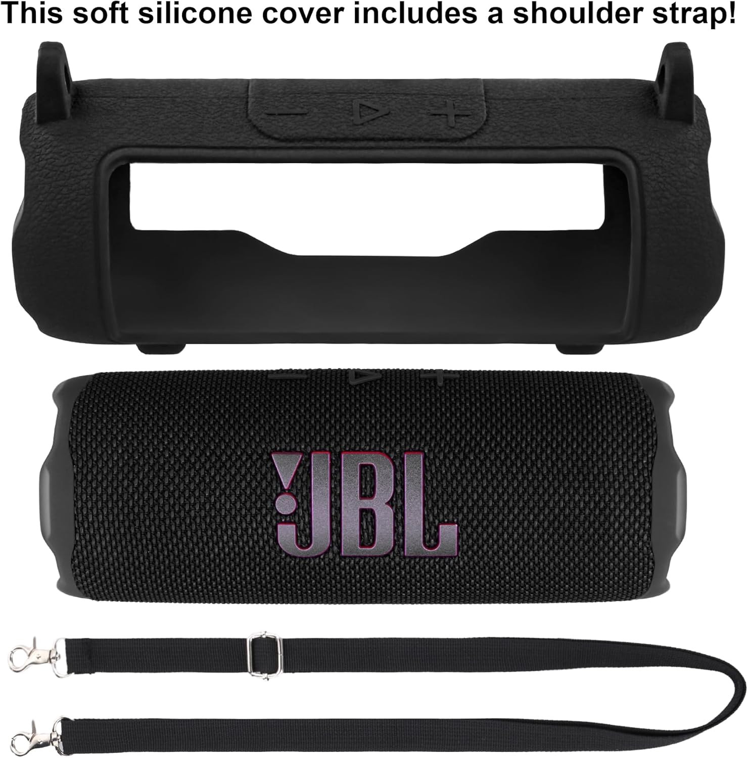 Protect your JBL Flip 7 Bluetooth Speaker in style with this premium silicone protective case. Crafted from thickened, high-density silicone, it provides reliable shock absorption against drops, scratches, and impacts—ideal for outdoor use. With a precise button alignment, you can enjoy full access to all ports, buttons, and controls without removing the case. The anti-slip base keeps your speaker steady on any surface, while the adjustable shoulder strap makes carrying effortless during travel, hiking, or camping. Lightweight and stylish, this Flip 7 case offers both functionality and a refined look that complements your speaker.