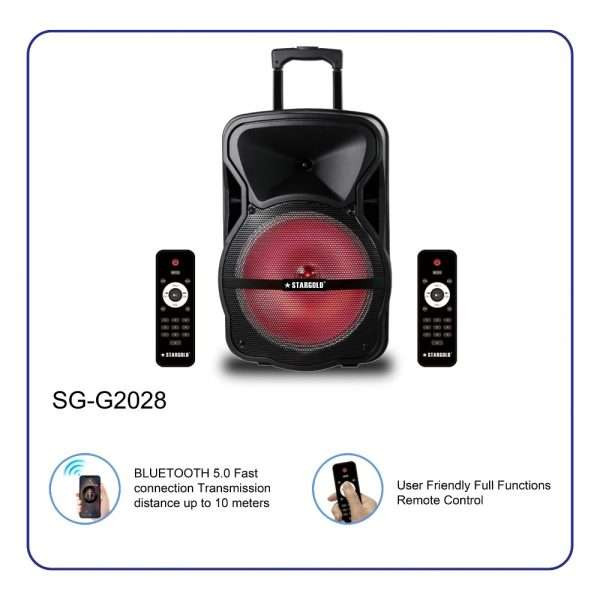 The STARGOLD SG-G2028 combines powerful performance with sleek design, making it the ultimate choice for music enthusiasts who value both style and sound. Whether you’re hosting parties, enjoying a movie, or singing along in a karaoke session, this speaker is built to deliver exceptional clarity, booming bass, and lasting entertainment.