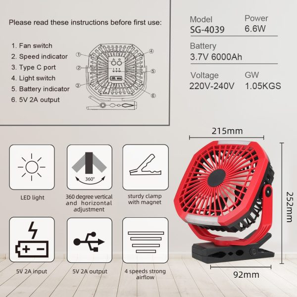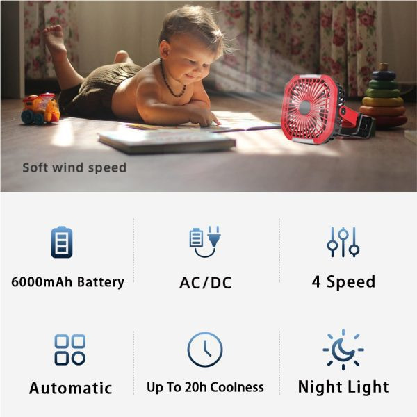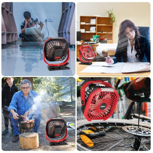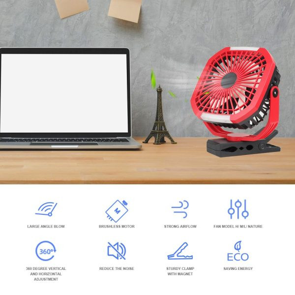 The strong grip clamp allows the fan to be securely mounted on desks, car seats, strollers, treadmills, golf carts, or used as a standalone desktop fan. Ideal for outdoor activities, camping trips, gym workouts, or anywhere you need a portable cooling solution.