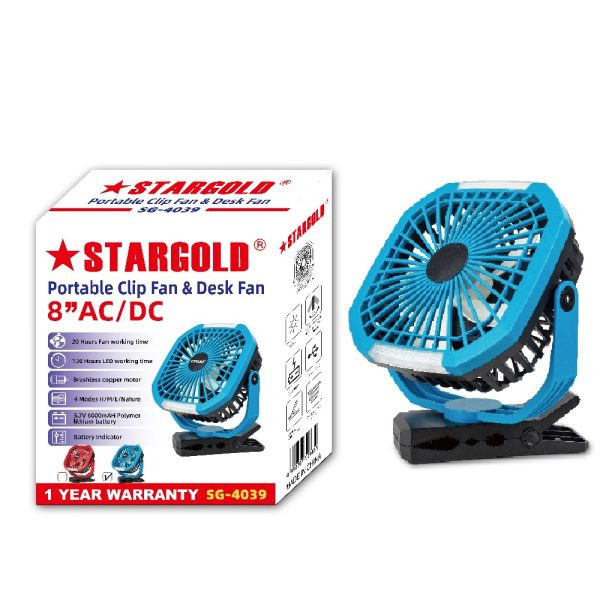 Stay cool anywhere with the STARGOLD portable clip-on & desk fan, designed for ultimate versatility, quiet operation, and safety. Whether at home, outdoors, or on the go, this fan ensures refreshing airflow exactly where you need it.