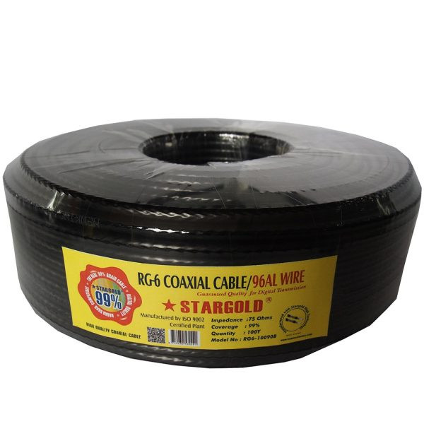 STARGOLD RG6 – Solid Copper Coaxial Cable, 10090B Black: Your Reliable Connection Solution