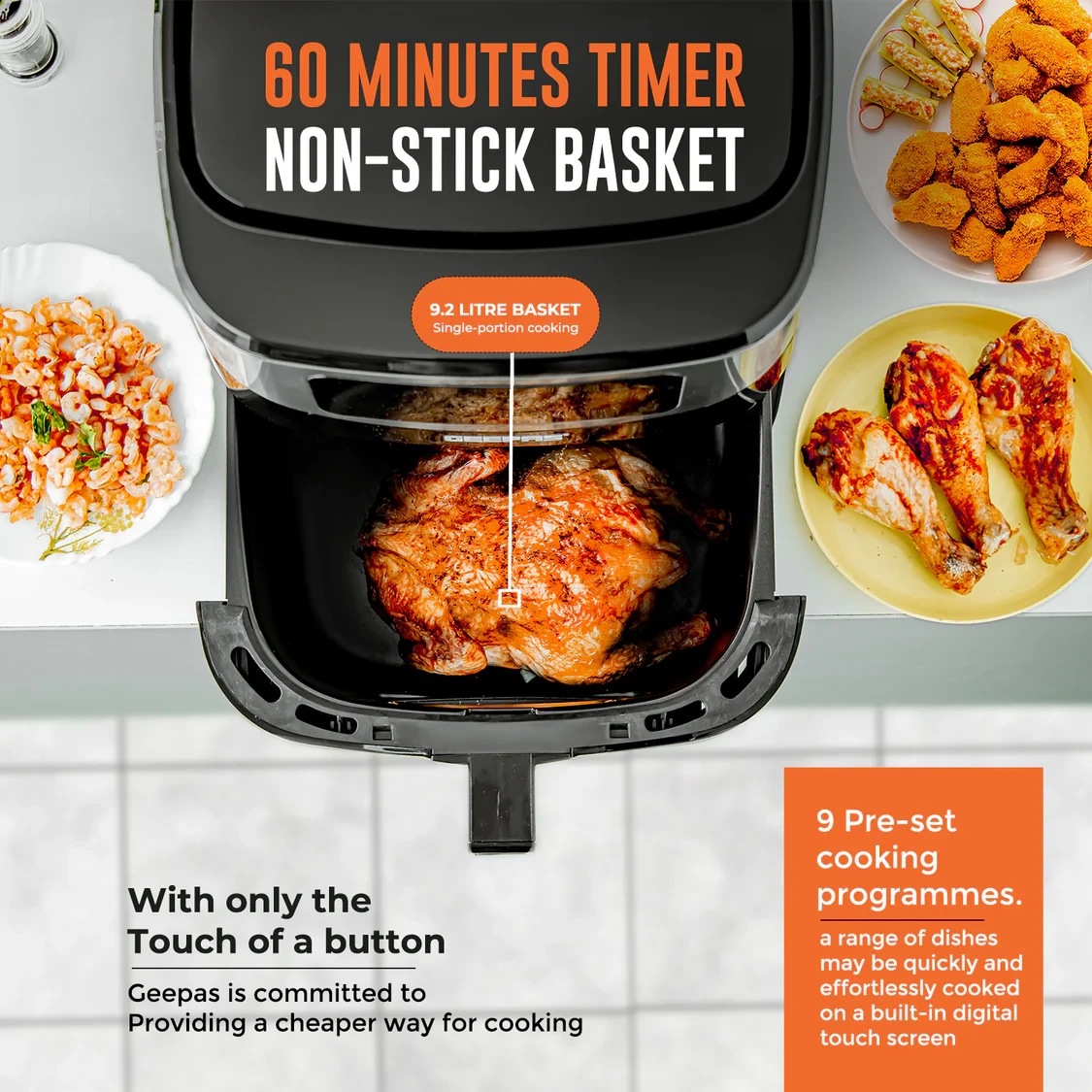 - 9.2L large capacity for family-sized meals