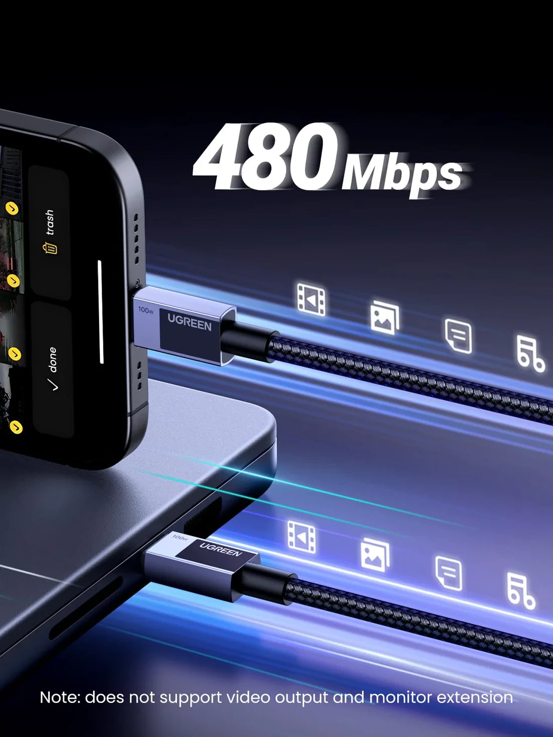 Charge and sync your devices efficiently with the UGREEN 100W USB-C Cable, designed for high-speed PD fast charging and rapid data transfer. Perfect for laptops, smartphones, tablets, and other USB-C devices.