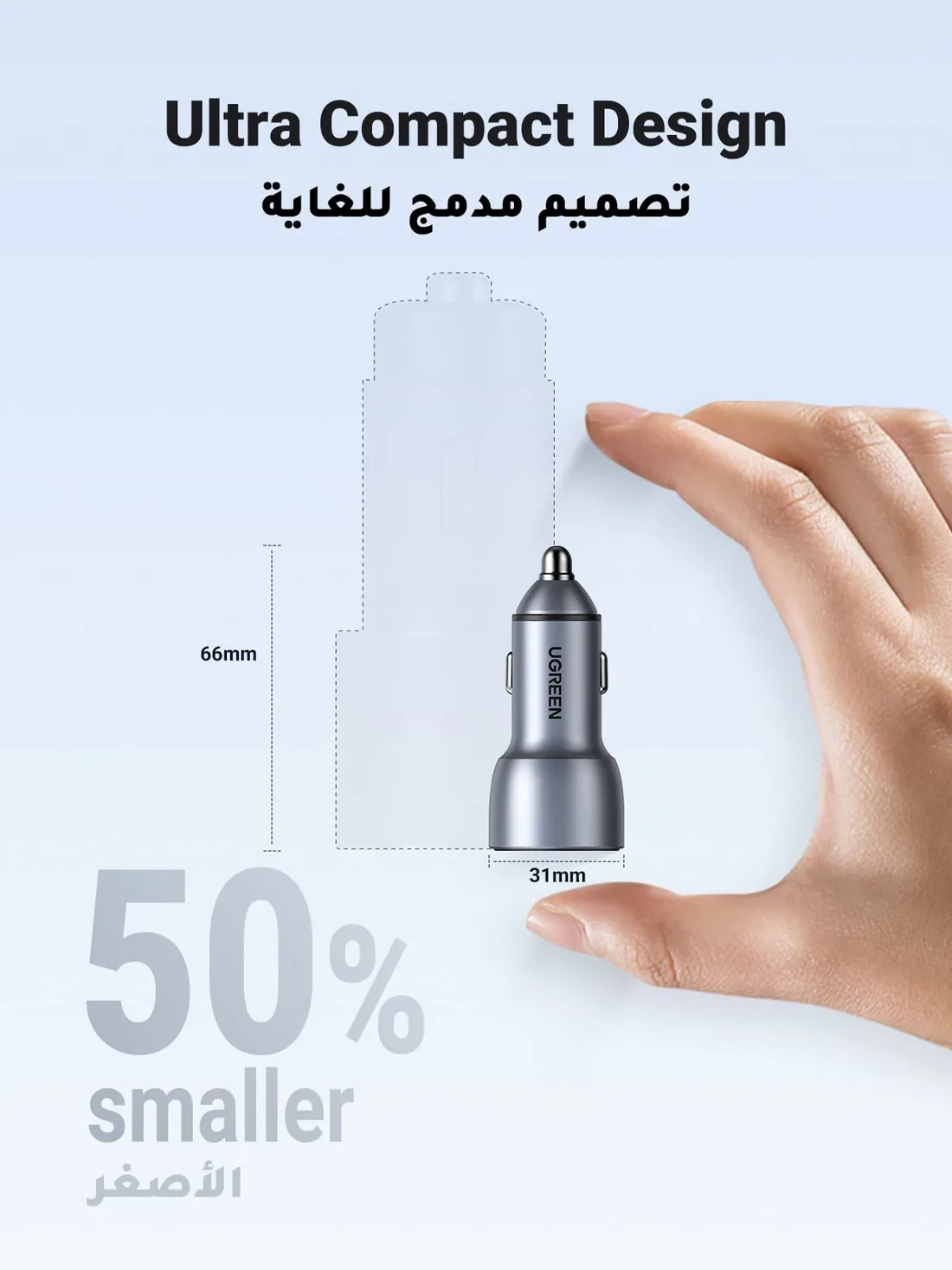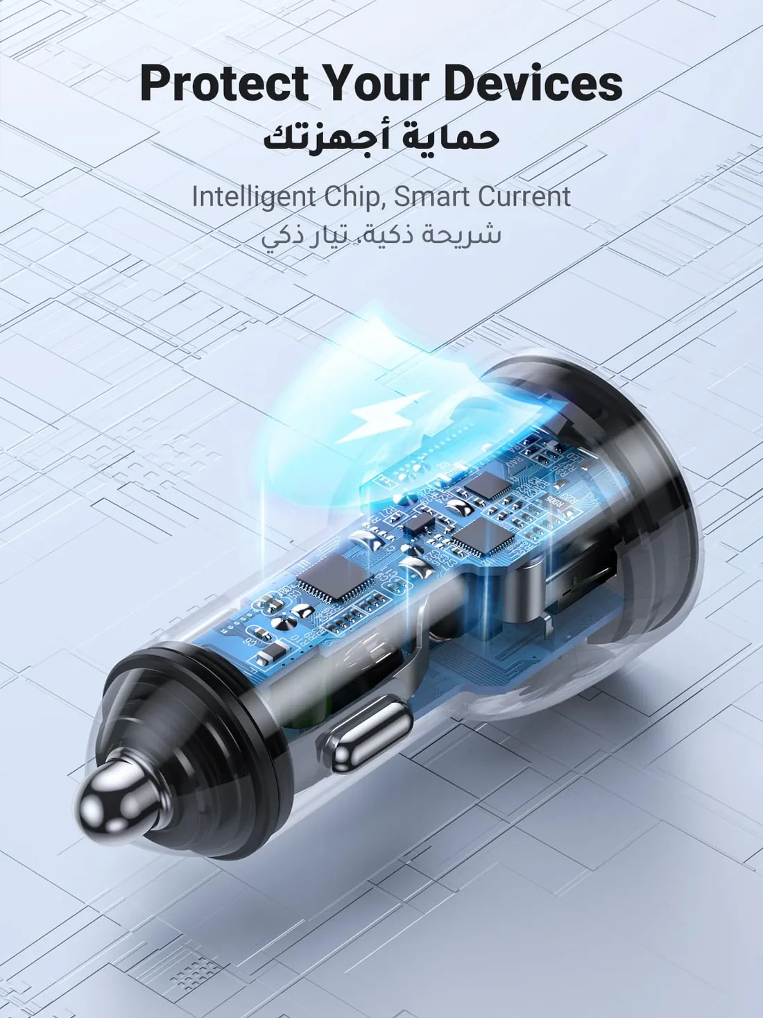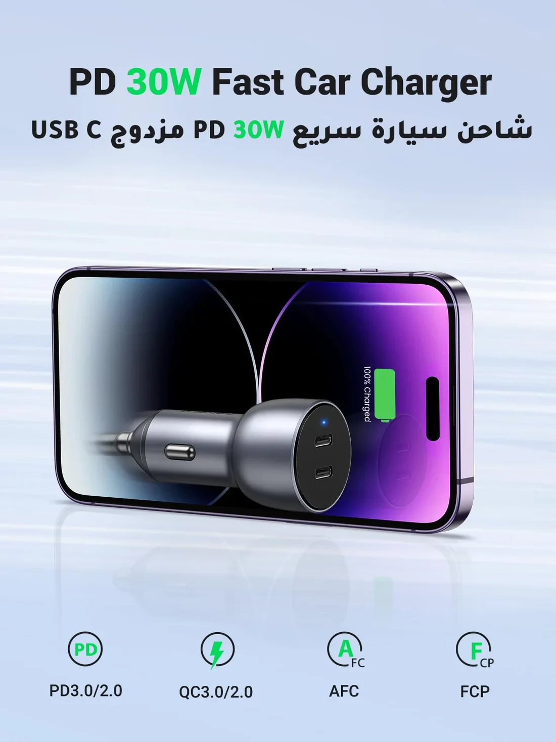 Power your devices on the road with the UGREEN 60W Dual USB-C Car Charger. Designed with advanced Power Delivery fast charging technology, this compact adapter provides powerful and reliable charging for smartphones, tablets, and other USB-C devices while you drive.