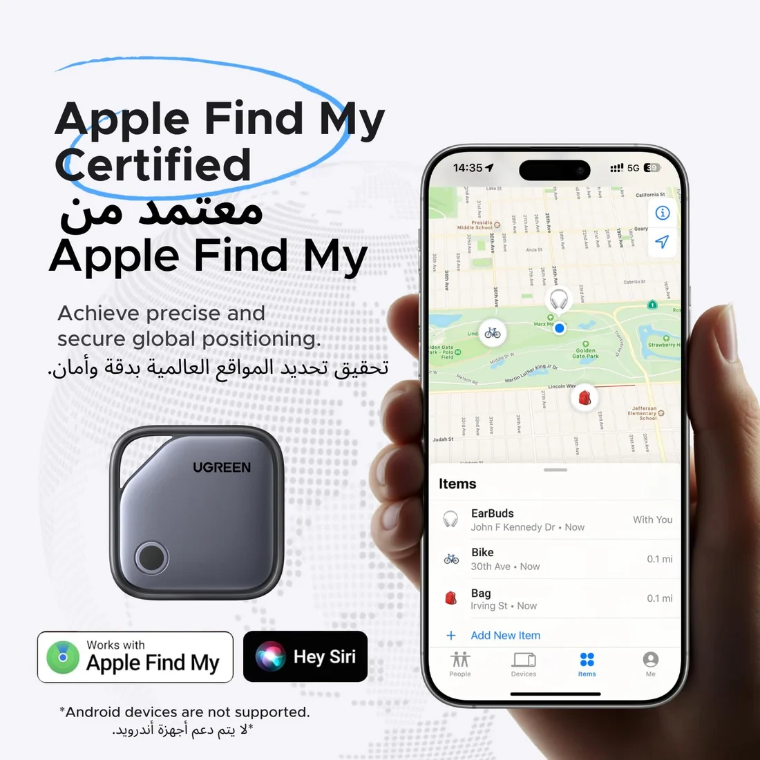 Works with **Apple Find My enabled devices running iOS, iPadOS, or macOS.