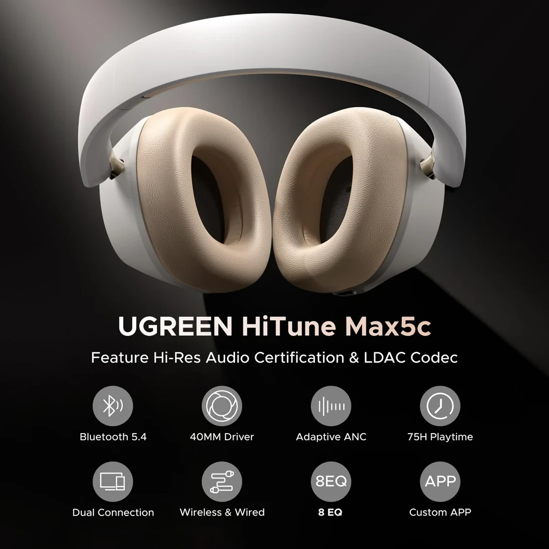 The UGREEN HiTune Max 5C delivers realistic, lossless sound with LDAC audio decoding technology. Dual Hi-Res certified for both wired and wireless listening, these headphones reproduce deep bass, clear mids, and crisp treble, perfect for music lovers and audiophiles seeking a premium sound experience. ?