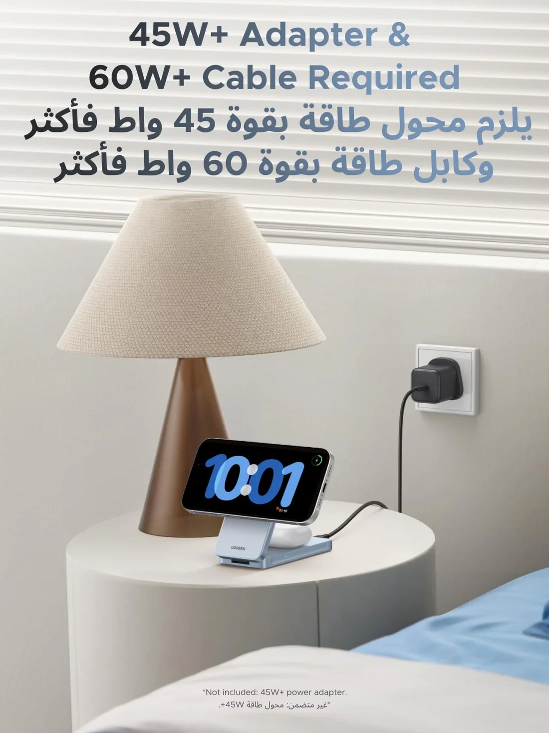 Designed with convenience in mind, the charger features 360° rotation and a 70° adjustable viewing angle, allowing you to comfortably watch videos, join video calls, or browse while charging.