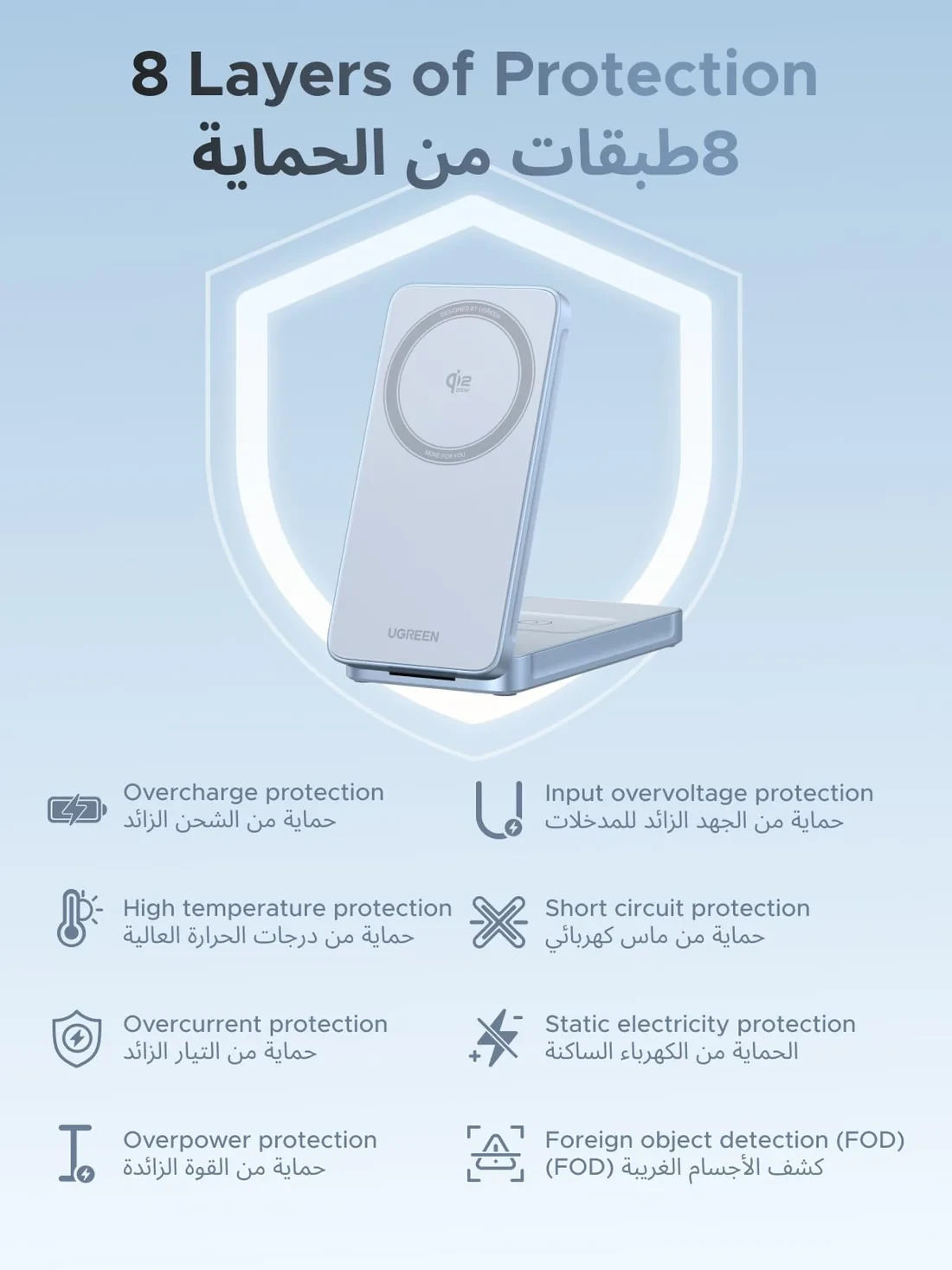 Its compact foldable design (only 212g) makes it perfect for travel, office desks, and bedside tables. The station also includes advanced safety features with smart-chip protection against overheating, over-current, and short circuits.