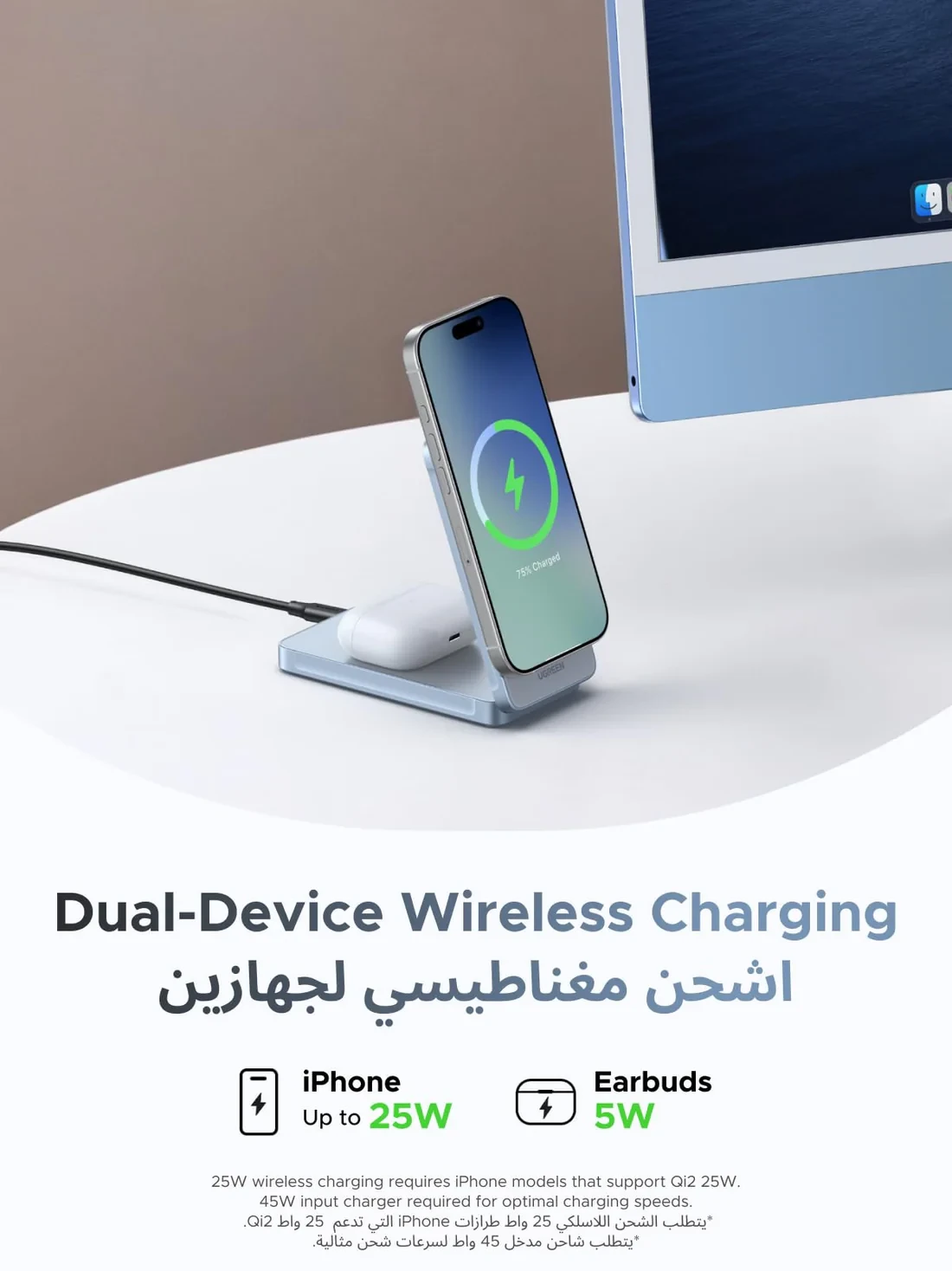 The UGREEN MagFlow charger keeps all your Apple devices powered in one compact and elegant charging station.