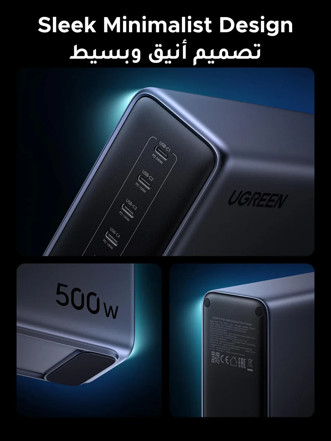 1 × UGREEN Nexode 500W 6-Port Desktop USB-C Charger
