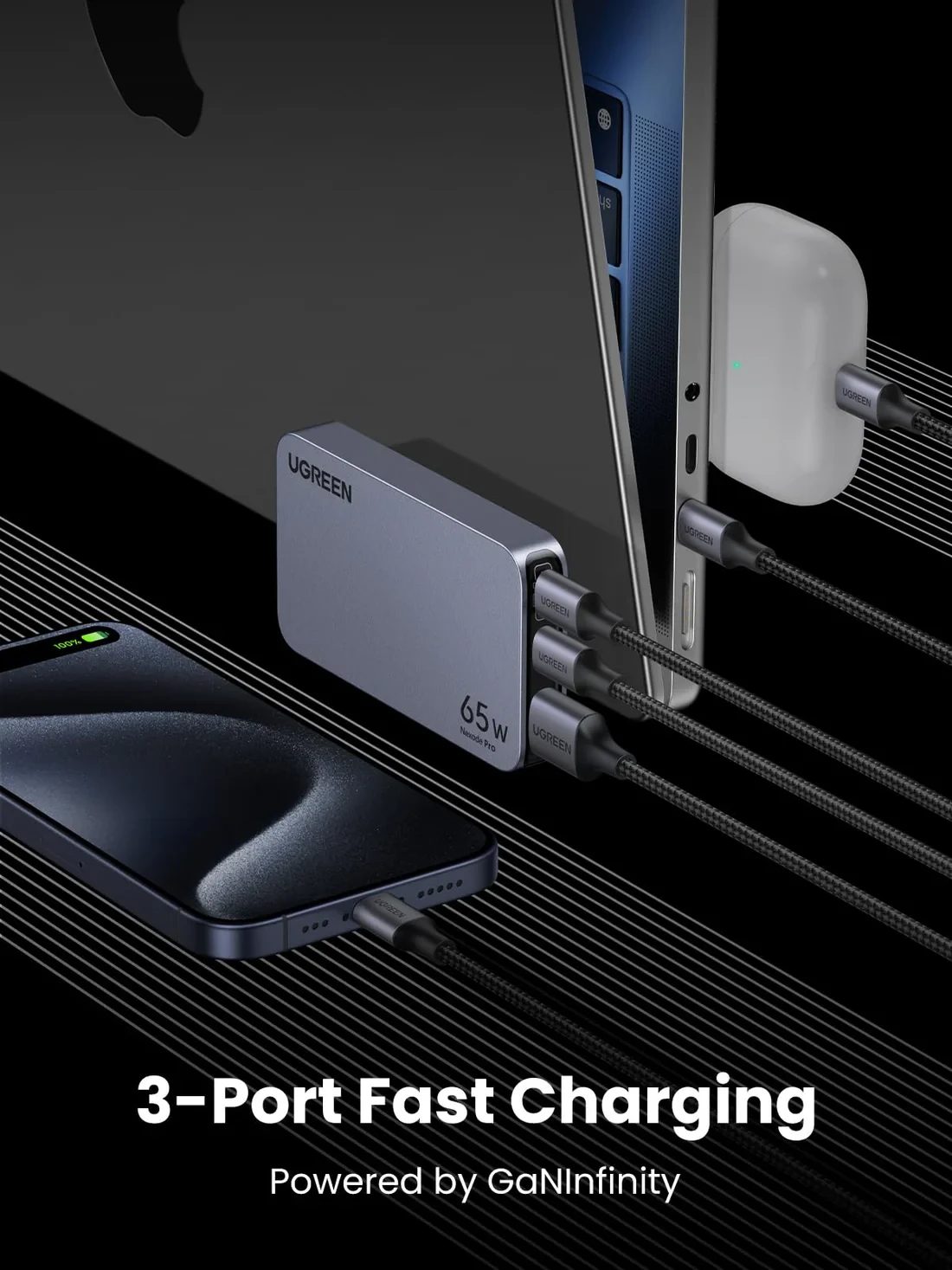 The UGREEN Nexode Pro 65W Travel Charger is the ultimate compact and safe solution for multi-device charging on the go.