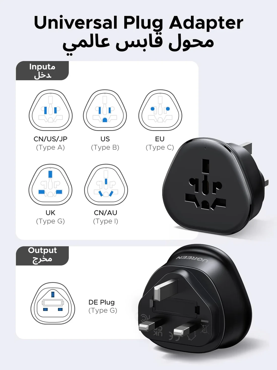Travel effortlessly with the UGREEN Universal Travel Plug Adapter, designed to provide safe, reliable, and compact power access in over 200 countries. With support for US, EU, UK, AU, China, Japan, Canada, Hong Kong, Singapore, and more, it allows you to charge your devices wherever your travels take you.