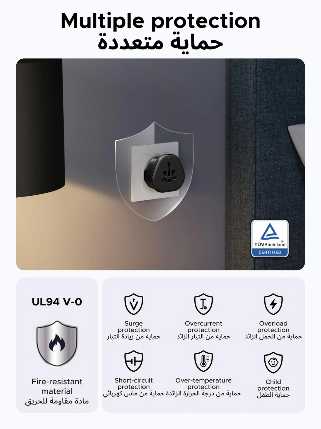 Equipped with advanced safety features, the adapter protects your devices from: