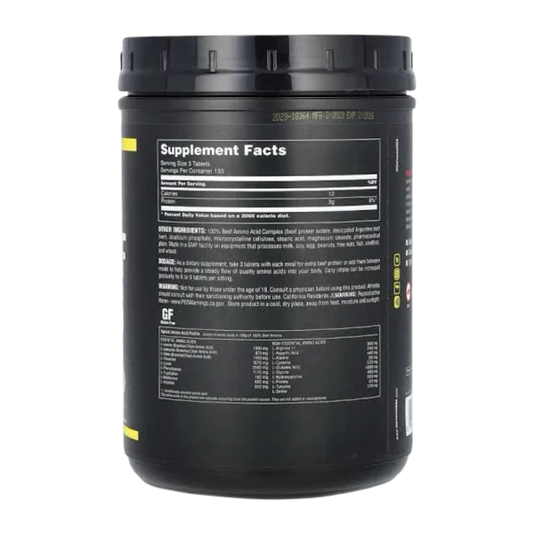 100 Beef Aminos is a high energy mix of superior beef amino acids deduced from the loftiest quality beef protein insulate, beef albumin concentrate and Gray beef liver. Each tablet contains a full diapason of largely concentrated amino acids, as well as numerous other necessary and essential nutrients. Each serving provides a different source of amino acids uprooted solely from ultraexpensive beef sources. When 100 Beef Aminos is taken previous to each mess, it significantly increases diurnal amino input. 100 Beef Aminos harnesses the anabolic eventuality of beef, and in turn provides ideal support for adding muscle mass to the body. 100 Beef Aminos is a great way to tap into all the advantages of beef, without suffering from any of the disadvantages, similar as the high fat content.