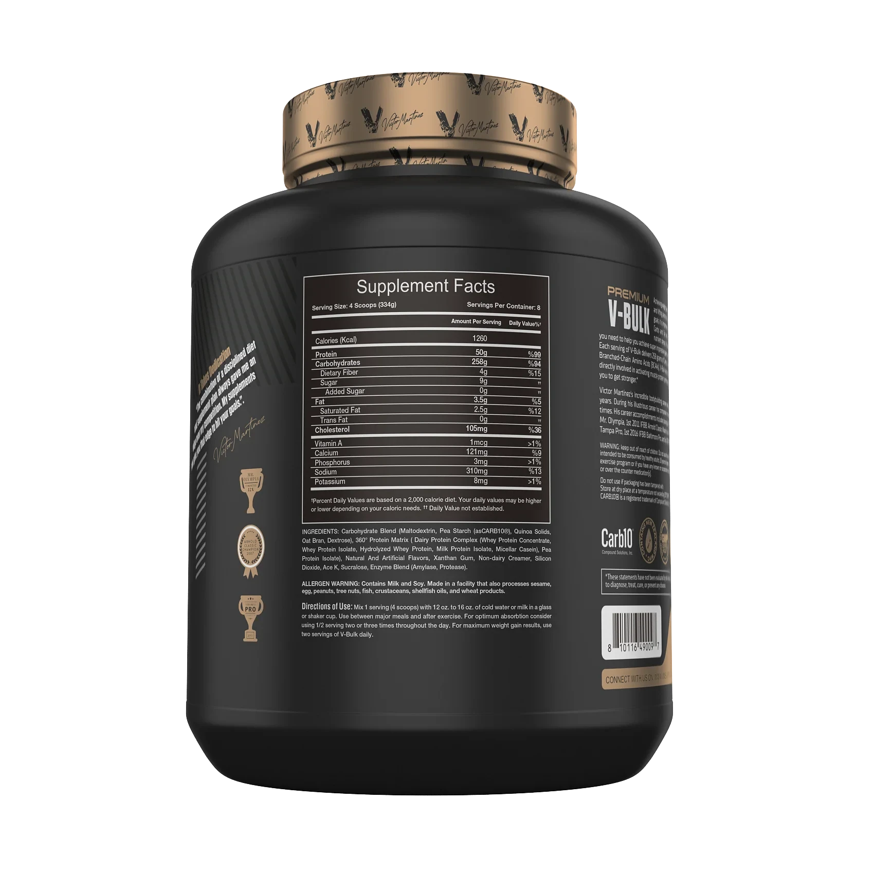 Victor Martinez’s Premium V- Bulk is a clean and nutrient- thick mass killer designed to support hard winners and bodybuilders in achieving significant muscle growth without inordinate fat accumulation. Each serving delivers a potent mix of high- quality protein, complex carbohydrates, and essential amino acids to fuel violent exercises and promote spare muscle development.