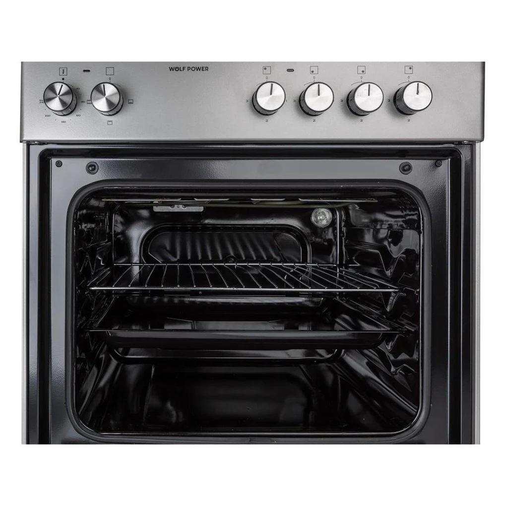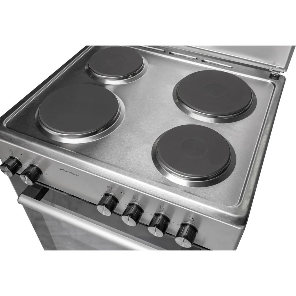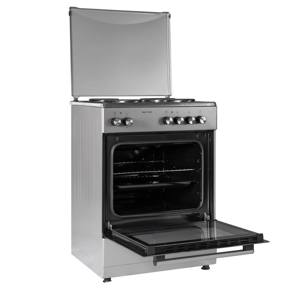 Cook efficiently with the Wolf Power Freestanding 4-Zone Electric Cooker, WGC6060HERMF, featuring four hot plates for versatile cooking and a spacious 55L oven for large dishes. The one-hand ignition control knobs make operation simple and convenient. Equipped with an oven lamp, it ensures proper visibility while cooking. The durable stainless steel body provides long-lasting rust protection and a sleek, modern look. Ideal for everyday cooking, this freestanding cooker combines functionality and style for any kitchen.