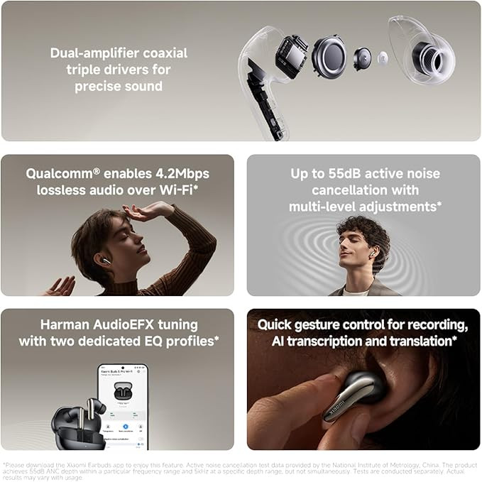 The Xiaomi Buds 5 Pro WiFi are true wireless earbuds designed for everyday listening, calls, and multimedia use. They support wireless connectivity and are built for stable performance across compatible mobile phones and tablets. The earbuds feature a compact and lightweight design suitable for extended wear during daily activities such as commuting, work, and entertainment.