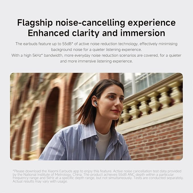 This model is equipped with a triple microphone system supported by AI call noise reduction to help improve voice clarity during calls. Active noise cancellation is included to reduce surrounding noise in different environments. The earbuds support high-resolution wireless audio and are designed for use across music playback, gaming, video streaming, and voice communication. Touch controls and app-based control options allow easy operation and customization.