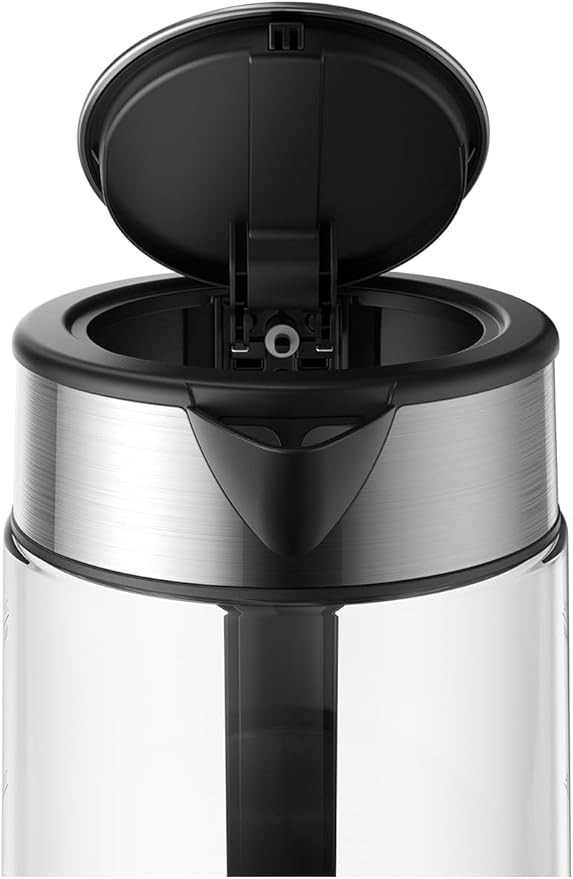 This kettle is constructed with borosilicate glass, intended to support safe and clean water heating. It operates with a 2200 watt power output, enabling rapid boiling in a short time. An LED light indicator provides a visual signal during heating, while the advanced thermostat supports even heat distribution for consistent results. The one-touch lid opening is designed for convenient single-hand operation.