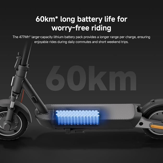 The Xiaomi Electric Scooter 5 Pro is designed for daily commuting and longer urban rides with a focus on stability, comfort, and extended travel distance. It features a durable frame constructed from carbon steel with aluminum components and supports a minimalist design suitable for everyday use. The scooter is equipped with front and rear dual shock absorbers to help improve ride comfort on uneven road surfaces.