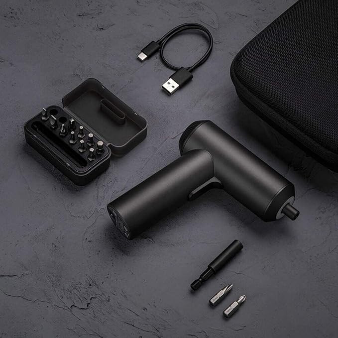 The package includes the electric screwdriver and a set of 12 S2 steel screw bits, providing compatibility with common screw types. Finished in black, the Xiaomi Cordless Screwdriver is intended for users seeking a simple, portable electric screwdriver for everyday tasks.