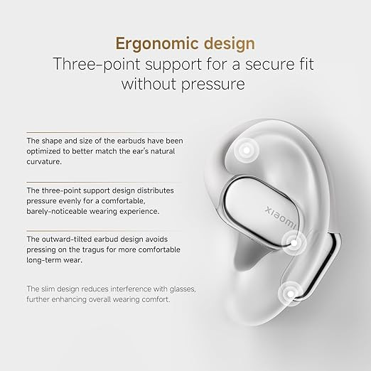 The Xiaomi OpenWear Stereo Pro is designed with an open-ear structure that allows comfortable listening without fully covering the ears. Its lightweight construction and soft-touch, scratch-resistant materials make it suitable for extended daily use while maintaining awareness of the surrounding environment. The open design supports comfort during activities such as commuting, work, and light exercise.