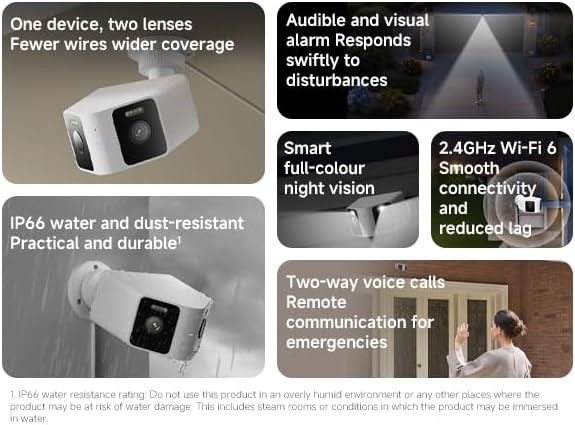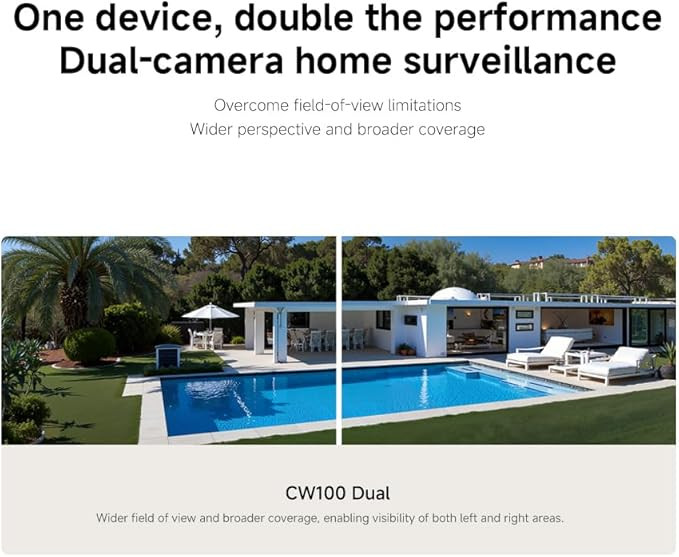 The CW100 Dual UK includes two-way audio functionality, allowing voice communication through the camera when needed. It supports local storage via MicroSD card, enabling on-device video recording without reliance on cloud-only storage. Its design and features make it suitable for residential outdoor security applications requiring wider visual coverage and intelligent detection.