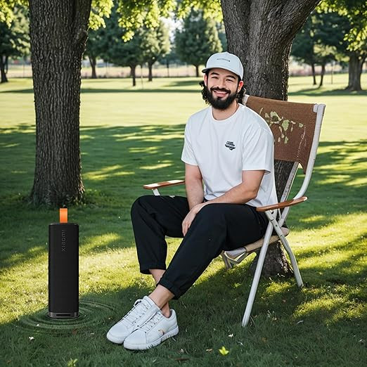 The Xiaomi Sound Outdoor Speaker is built with an IP67 dust and water resistance rating, making it suitable for use in various environments and weather conditions. It is powered by a rechargeable battery and supports USB Type-C fast charging, offering convenient recharging for regular use.