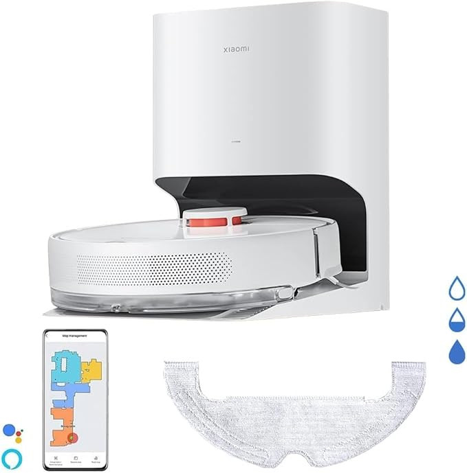The Mi Robot Vacuum S10 can be controlled through the Mi Home or Xiaomi Home app, allowing users to set cleaning schedules, manage maps, and define no go zones. Advanced sensors help prevent collisions and falls, while automatic recharge and resume functions ensure continuous cleaning. Powered by a 45 watt system and finished in white, it is designed for consistent daily cleaning with minimal user effort.