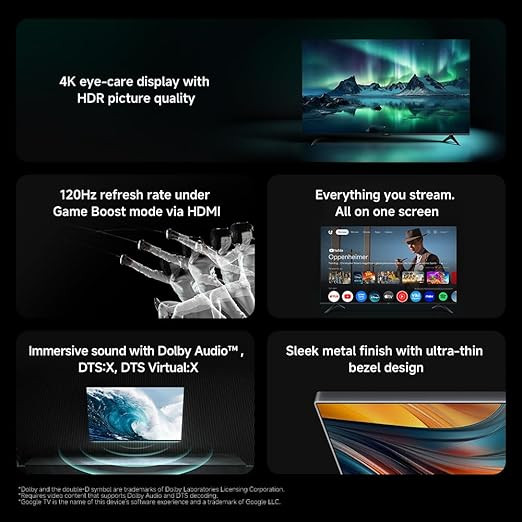 Audio performance is supported by dual speakers with Dolby Audio and DTS:X compatibility, delivering balanced and immersive sound. Powered by Google TV, the Xiaomi TV A 50 2026 provides access to a wide range of apps, streaming services, and smart features through an intuitive interface.