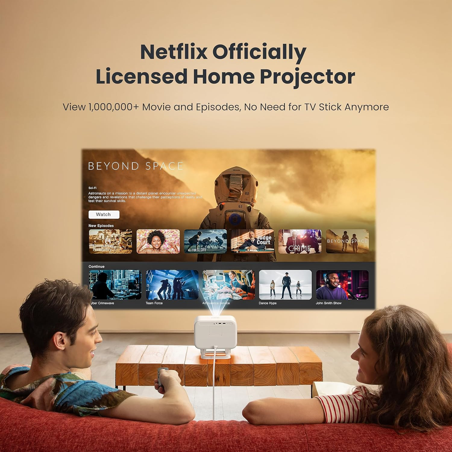 Enjoy breathtaking visuals with 700 ANSI lumens of brightness and native 1080P Full HD resolution, ensuring vibrant colors, sharp contrast, and cinematic realism even in moderate ambient light. The built-in Smart OS gives you direct access to Netflix, Prime Video, YouTube, and more, eliminating the need for extra streaming devices.